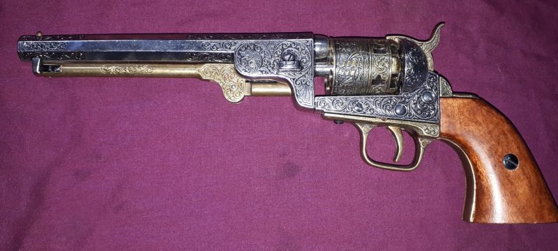 Colt 1851 revolver. Engraved model with timber grips. Cock and click single action $ 349.00 plus post